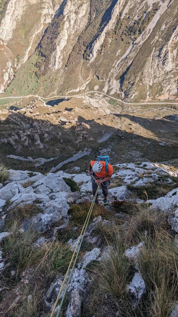 Sin duda, una vía 5 estrellas para conocer esta zona, aproximación breve y descenso rapelando por la misma vía.