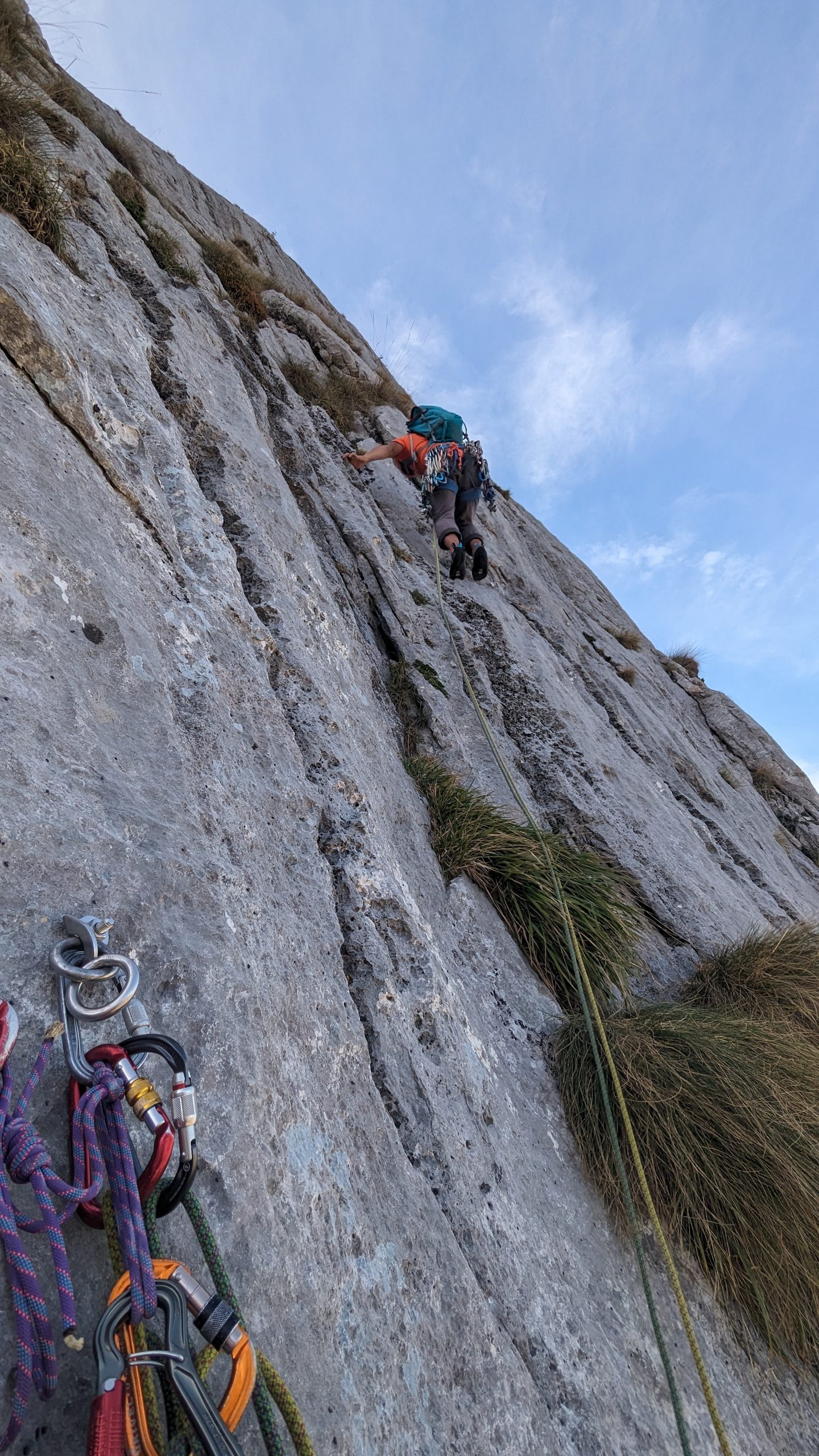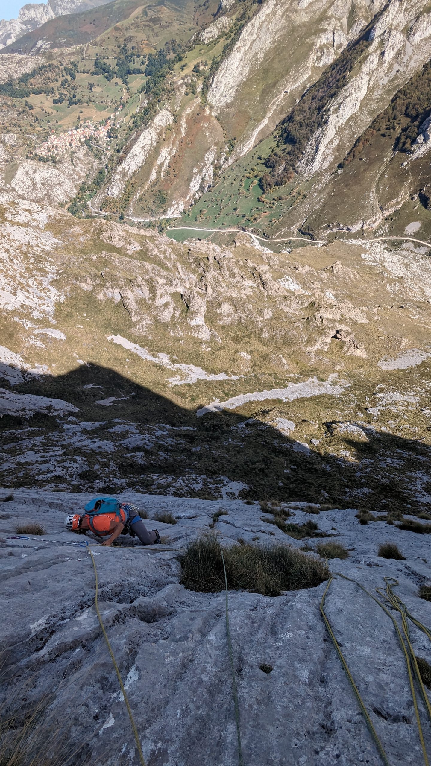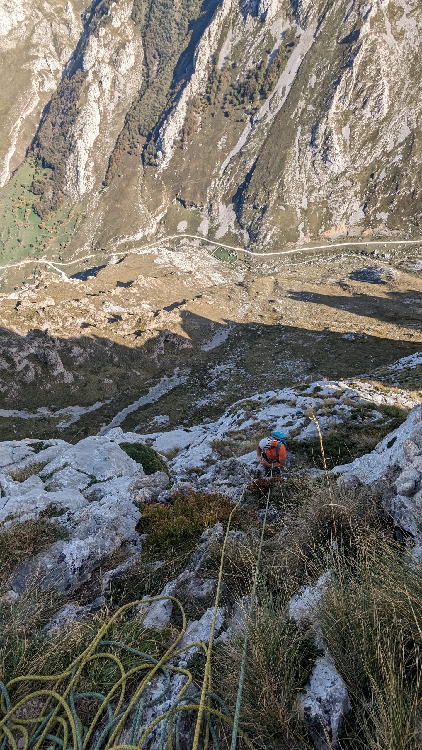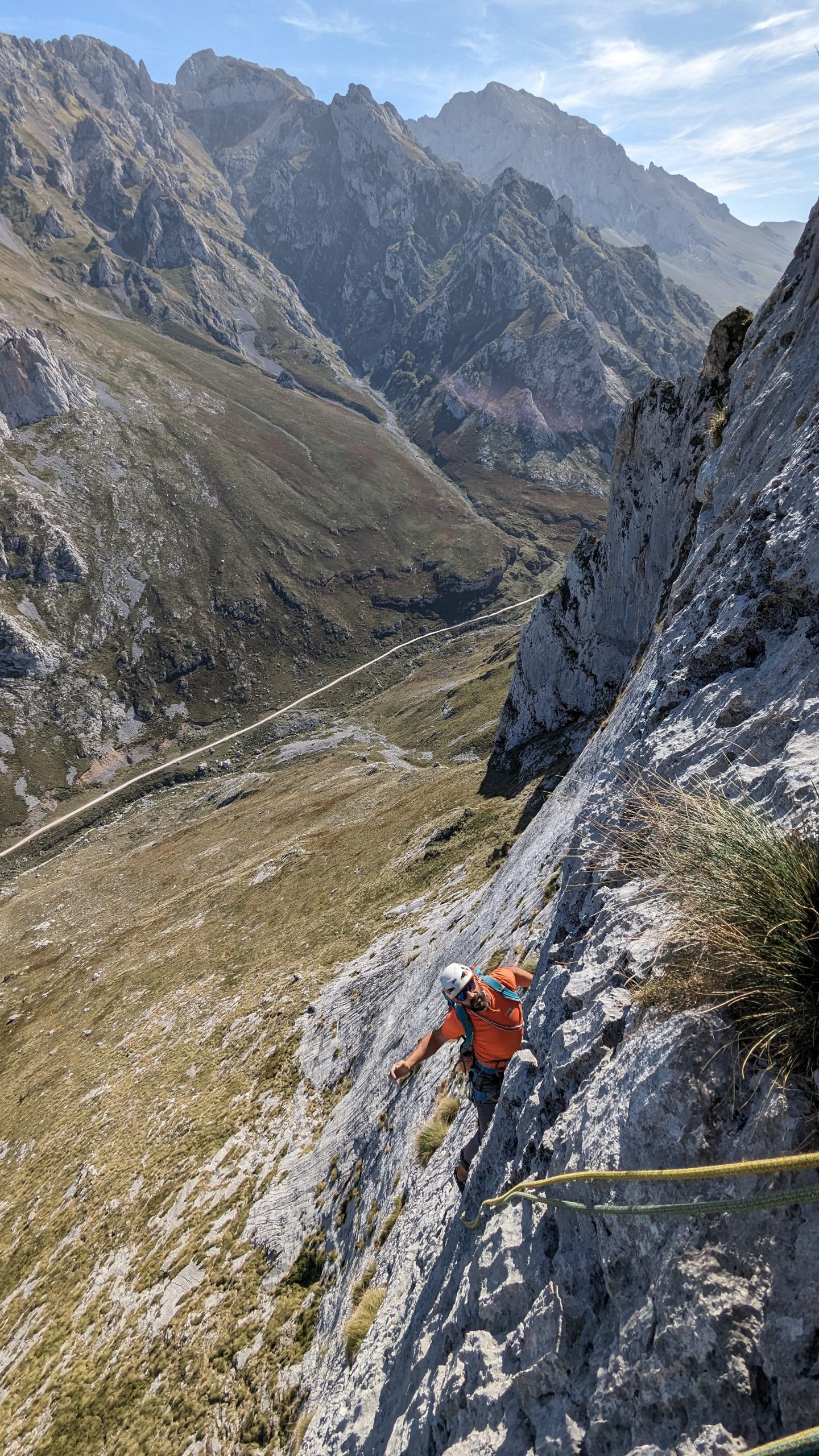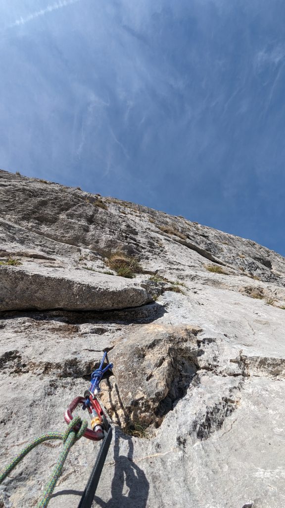 L3 (30m, IV+): A partir de aquí la dificultad va disminuyendo pero hay que estar concentrado ya que la posibilidad de proteger es nula y los seguros alejan. Posiblemente el largo más expuesto de la vía.