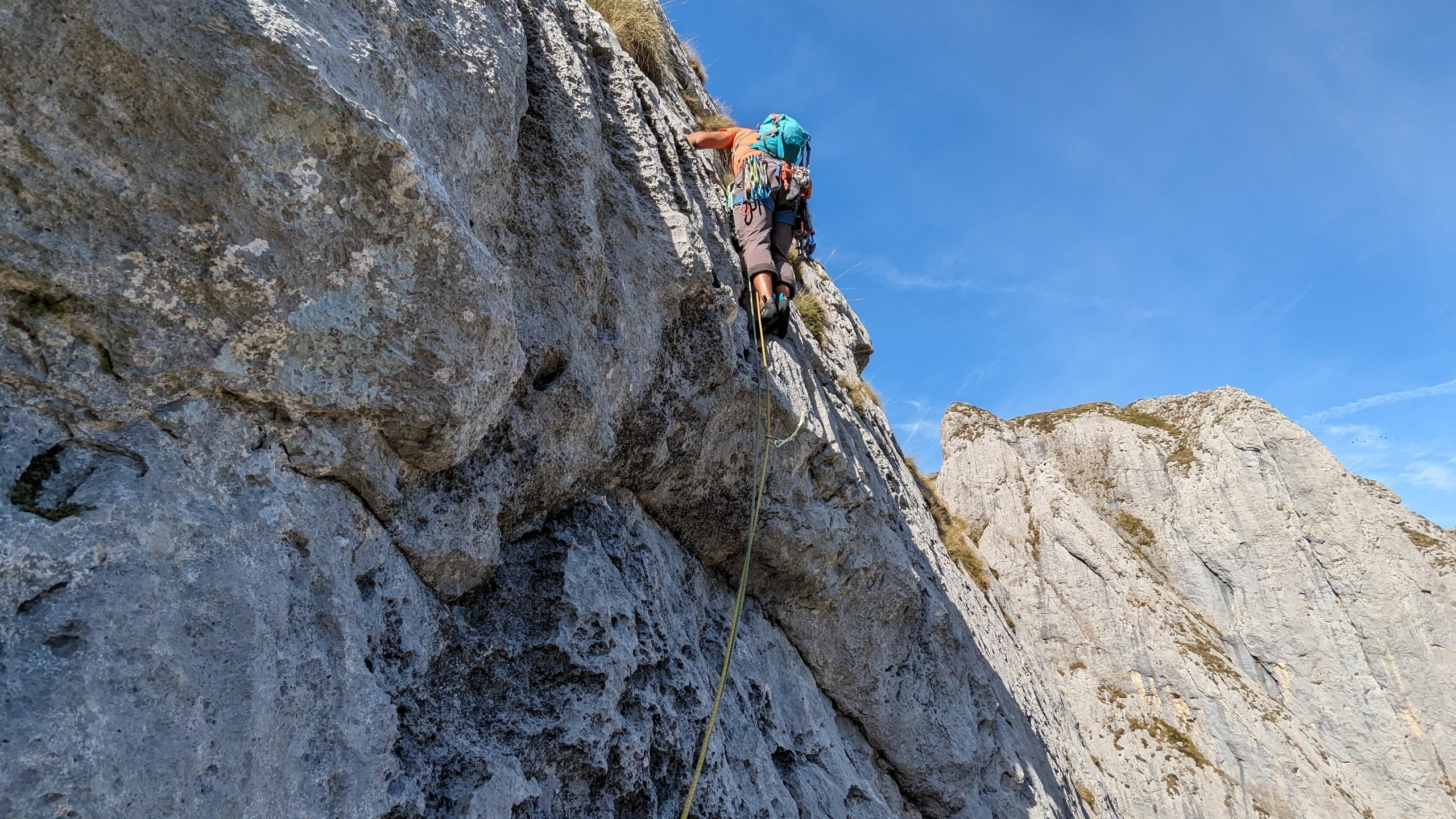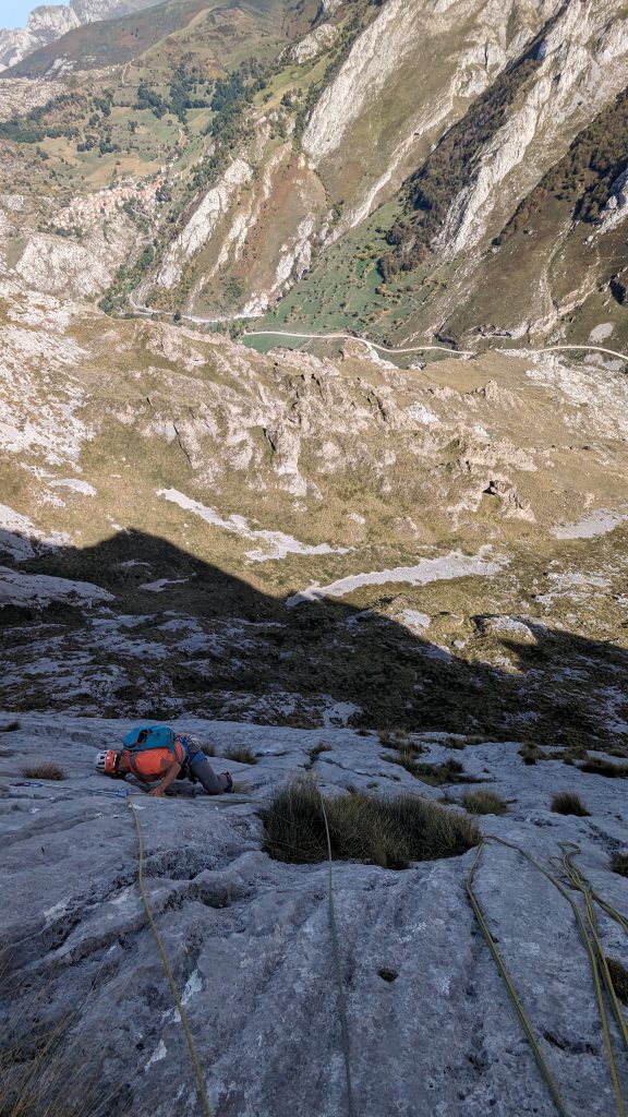 Elixir para Calvos es una de las vías más clásicas de toda la Peña de Fresnidiellu. Discurre por toda la pared central y la mayoría de sus largos son bastante amables y sencillos de escalar.