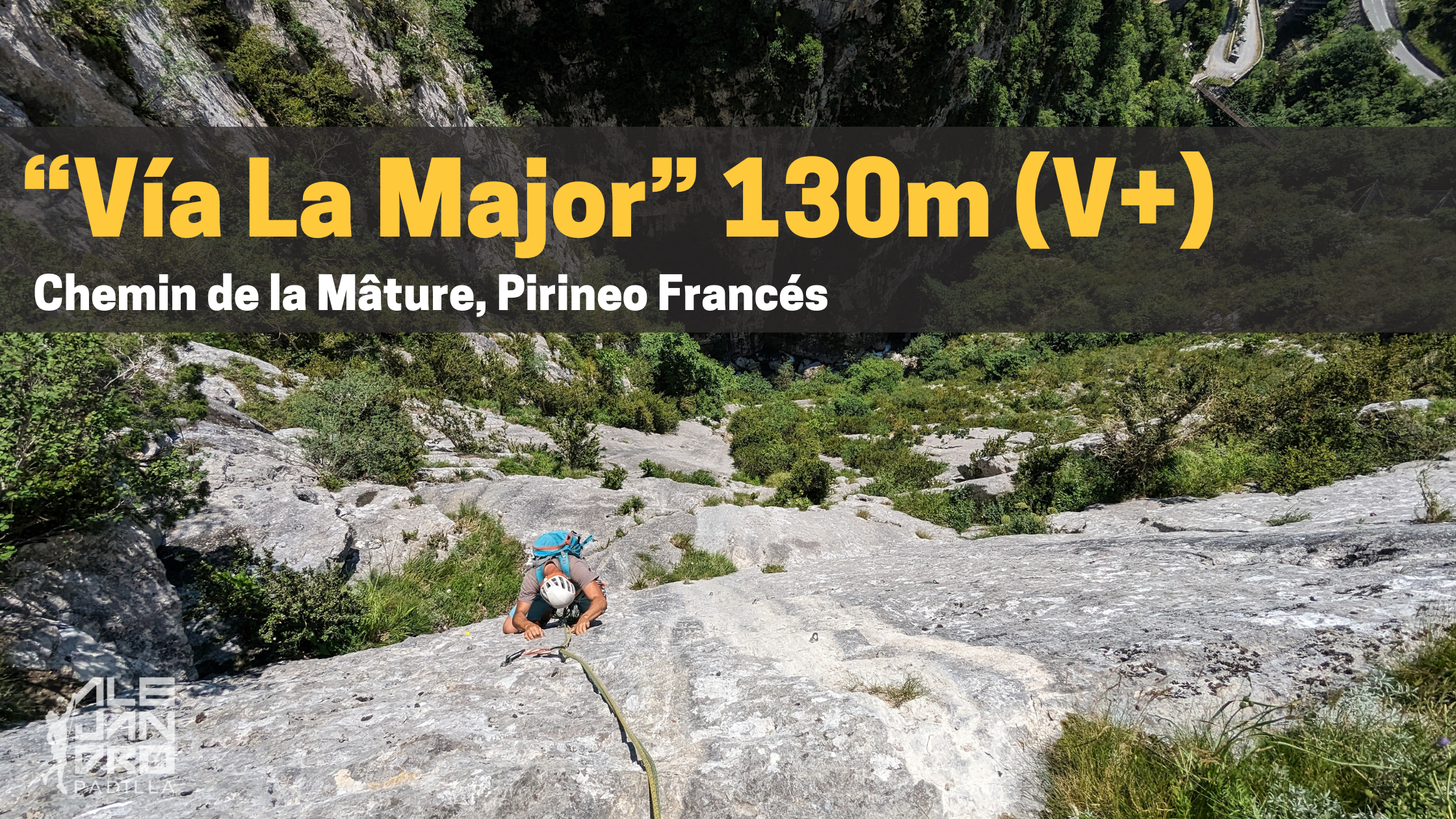 La vía Major es la más asequible del Chemin de la Mâture, alterna pasos de adherencia con fisuras y agujeros, una mezcla perfecta para una buena escalada.